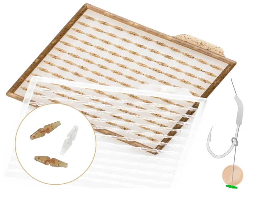 Balení obsahuje dvě sady zarážek: Jednu čirou a druhou transparentní hnědou pro dokonalé přizpůsobení nástraze.